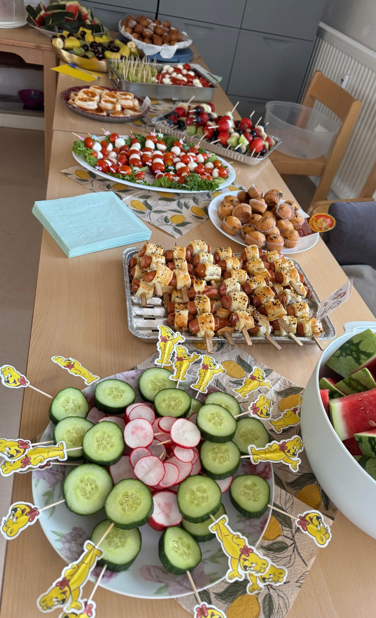 Am 12. Juli 2025 fand wieder unser Sommerfest statt, dieses Jahr ganz im Motto der bewussten Kinderernährung in Kombination mit der BeKi - Zertifizierung der Kinderstube. Die Kinder haben eine gemeinsam einstudierte Aufführung zur Raupe Nimmersatt vorgeführt und dabei gesungen und getanzt. Gemeinsam mit den Kindern haben wir in den Vorbereitungen Säfte selbst hergestellt, die am Sommerfest an unserer Getränkestation probiert werden konnten. Mit der tatkräftigen Unterstützung der Familien, entstand ein buntes und vielseitiges Buffet. Bei einer Feierlichen Übergabe wurde den Trägern, der Leitung und dem Team die Urkunde des BeKi-Zertifikats überreicht. Bei selbst gemachtem Fruchteis konnte unser Sommerfest mit einer Erfrischung ausklingen.